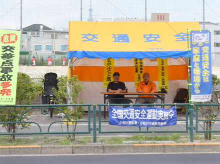 秋の交通安全週間が9月21~30日までの10日間、最終日は「交通事故死ゼロを目指す日」でした。町会交通部はスポーツ公園前にテントを設営し、交通安全の啓発をおこない又、町会広報車で町内を巡回して安全運転の呼びかけもしました。交通部の皆様、誠にありがとうございました。